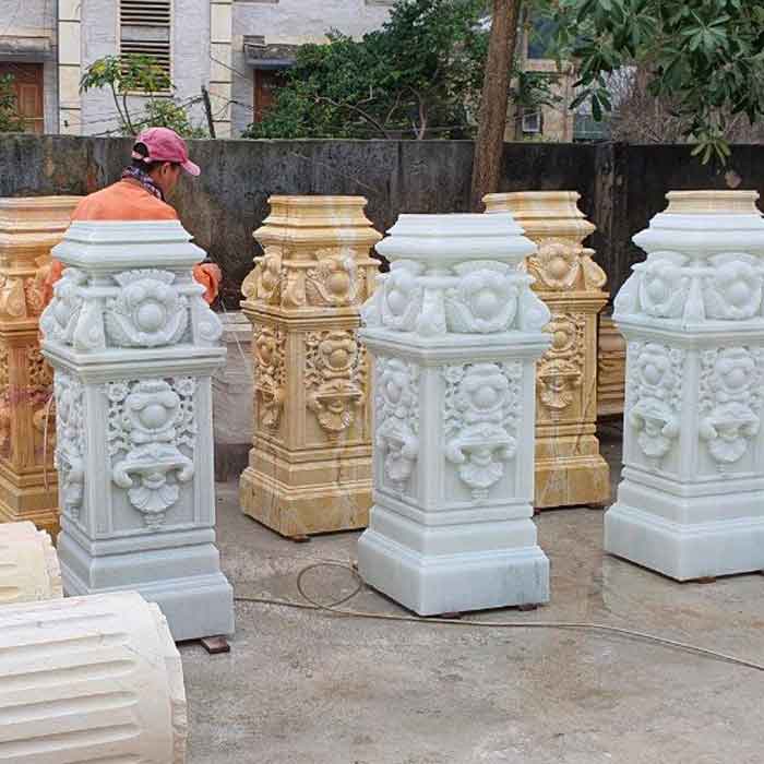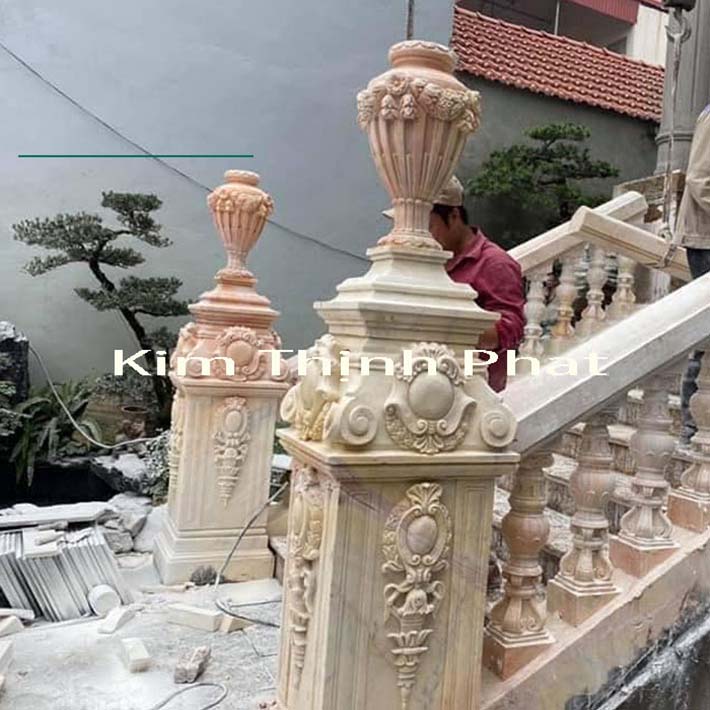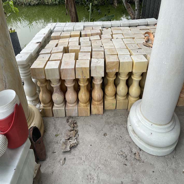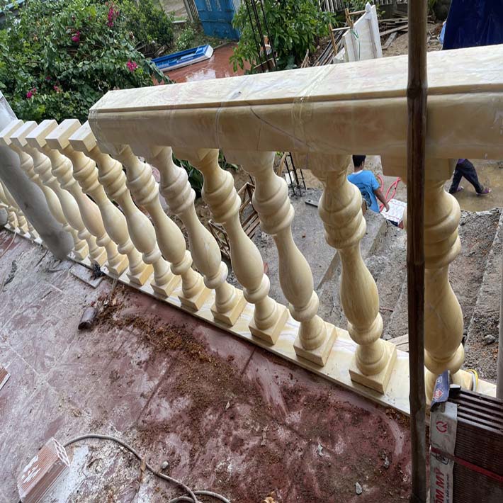lục bình đá hoa cương cẩm thạch onyx pakitan tự nhiên giá thi công hoàn thiện 4,640,000/1con tay vịn giá 12,500,000/1m, trụ cái giá 57,600,000/1 cây