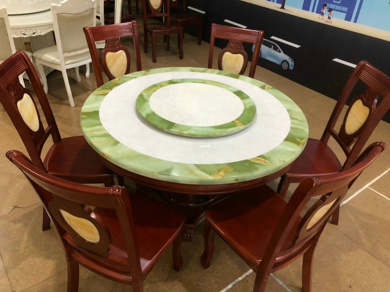 Mặt bàn đá hoa cương 810 tạo lại thấp hơn. Xét về xuất xứ, có nhiều bàn ghế xuất xứ từ nhiều nước trên thế giới, nên có thể chọn loại đá nội hoặc đá ngoại nhập. số dòng bàn ghế nội và ngoại nổi tiếng như: Phú Yên, (), nâu (), tím (Mông Cổ), (Na Uy)… Tiếp theo là màu sắc của bàn ghế. Nên chọn màu sắc bàn ghế phù hợp với màu sắc không gian bố trí nó. Ví dụ như bố trí bàn ghế trong phòng khách, nên chọn màu sắc hợp với tone màu chủ đạo hay màu tường, màu gạch. Cụ thể nếu phòng khách có màu tường trắng, thì có thể chọn bàn ghế màu trắng xám, màu vàng gỗ, màu vàng đất… Nếu phòng